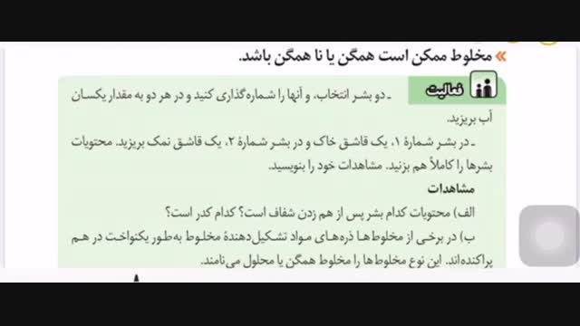 پخش صدا انواع مواد ناخالص( مخلوط ها) از نظر همگن بودن یا ناهمگن بودن قسمت 4 اشتراکگذاری لیست پخش ۰ نظر ۰ نظر دانلود دانلود ویدیو دانلود کیفیت 480p ۱۰.۷۷ مگابایت دانلود کیفیت 360p ۸.۴۱ مگابایت دانلود کیفیت 240p ۶.۳۸ مگابایت دانلود کیفیت 144p ۴.۶۶ مگابایت گزارش تخلف بیشتر گزینههای بیشتر لیست پخش لایکها گزارش تخلف ۰ لایک مدرسه شیمی دکتر انوار منتشر شده در تاریخ ۱۳۹۹/۰۵/۱۴ این کانال دنبال شد دنبال کردهاید دنبال کردن این کانال دنبال کردن مدرس دکتر سلما انوار، شیمی هشتم قسمت ۴ ادامه آموزش نظرات در حال حاضر امکان درج نظر برای این ویدیو غیرفعال است.