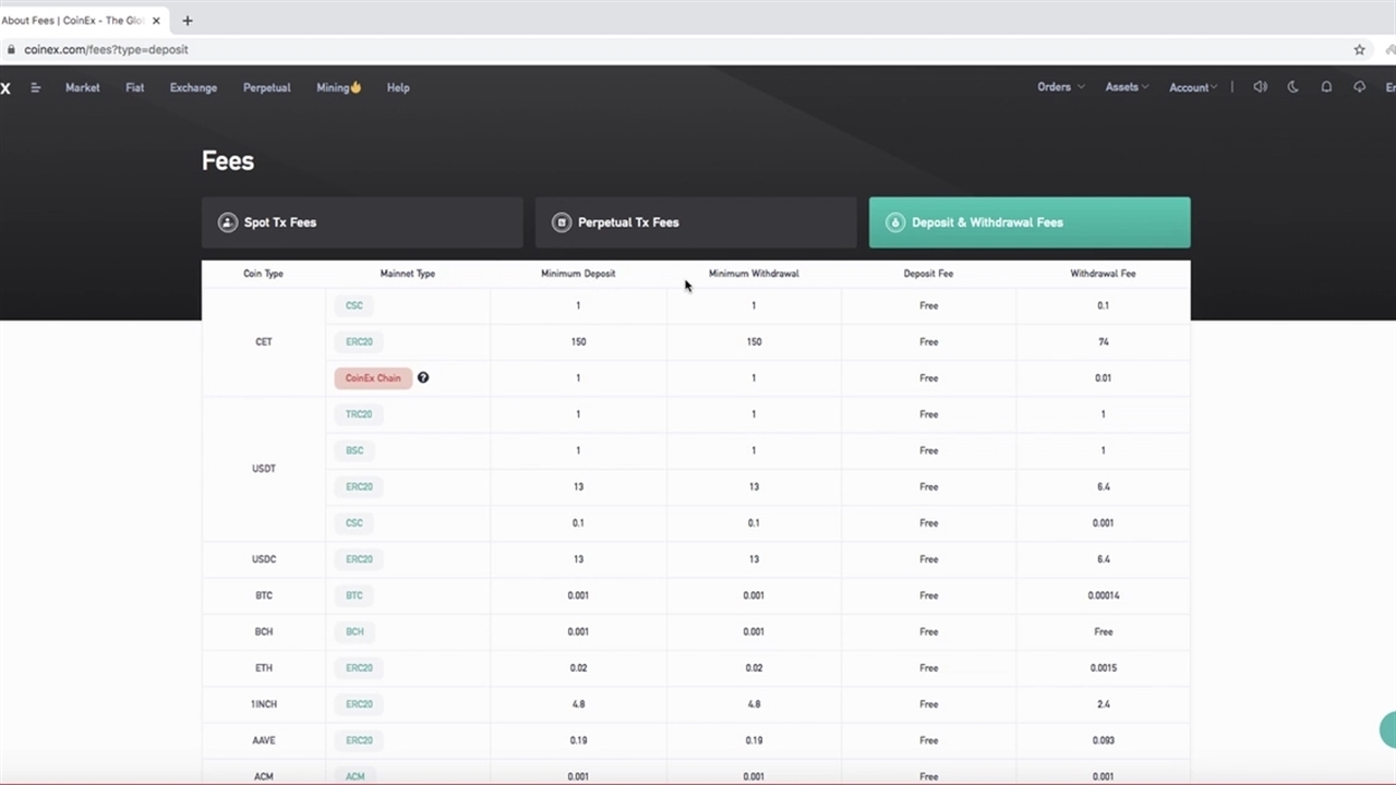 8. کارمزد واریز و برداشت ارز ها در صرافی کوینکس