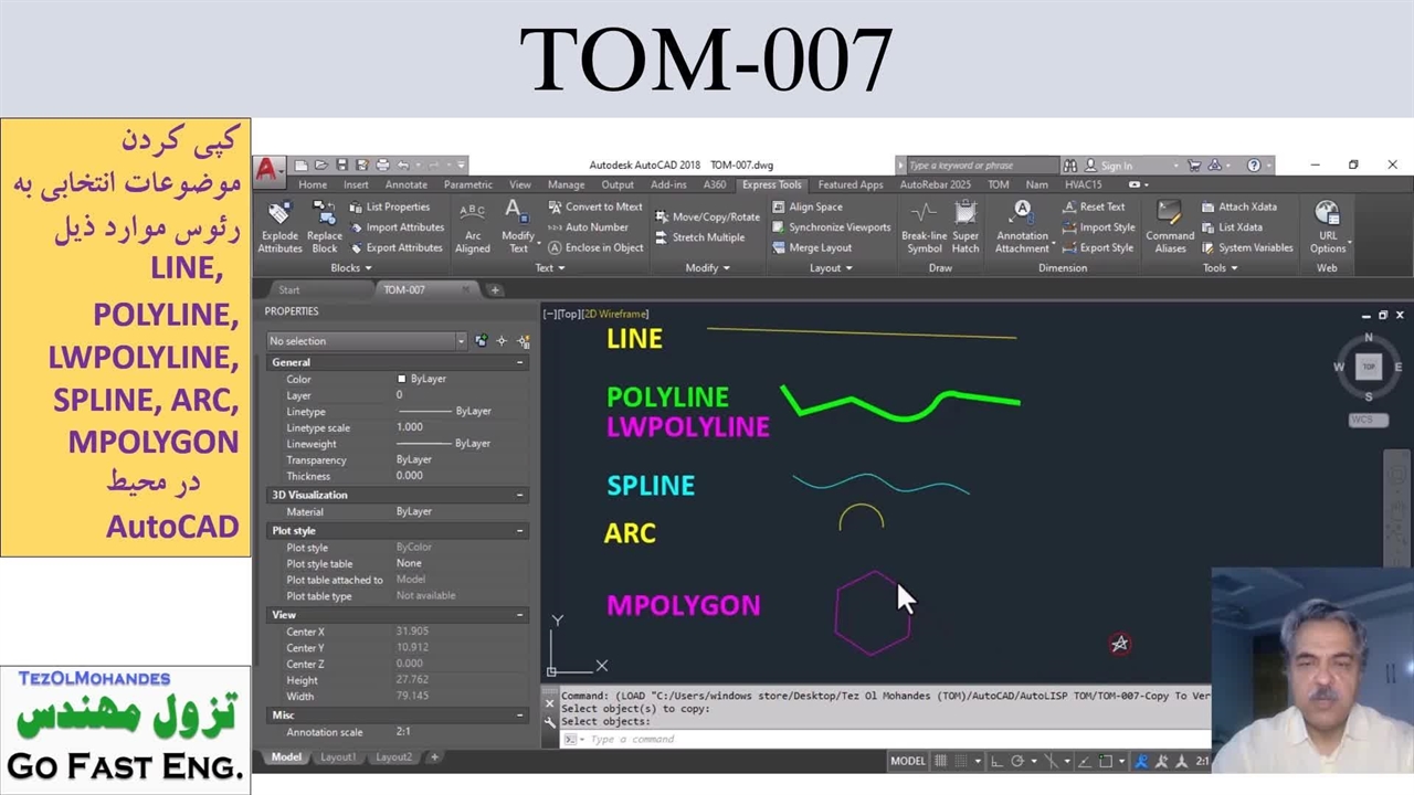 LINE, POLYLINE, LWPOLYLINE, SPLINE, ARC, MPOLYGON در محیط AutoCAD