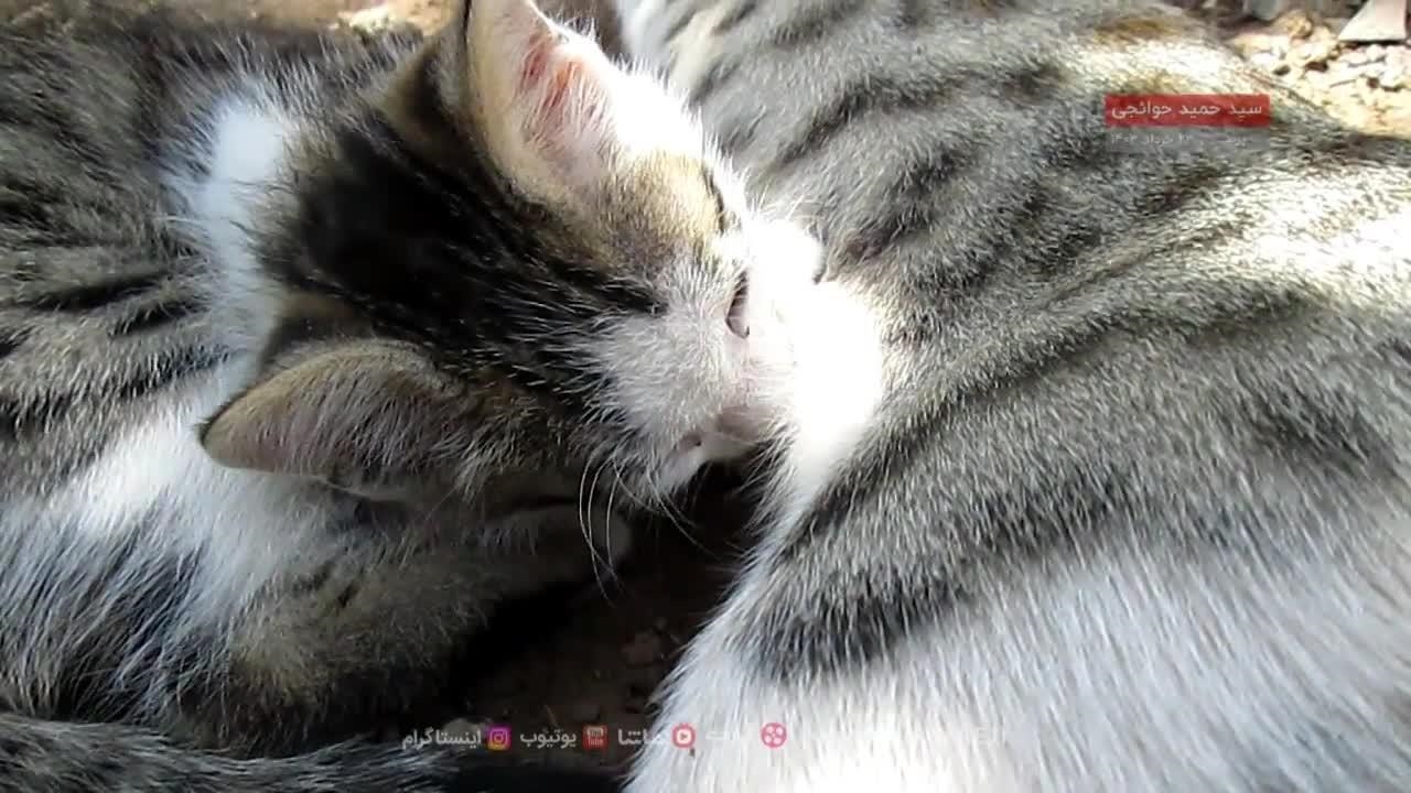صحنهی زیبای شیر خوردن بچه گربه از پستان مادرش.