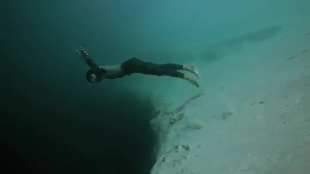 به یکی از عمیق ترین و وهم انگیزترین حفره های دریا رفته و به درون تاریک آن شیرجه میزند
