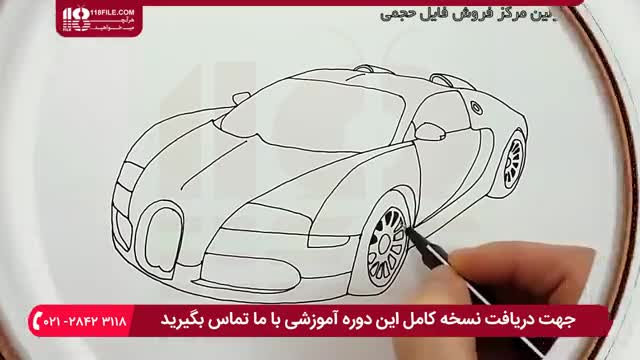 نحوه کشیدن نقاشی ماشین بوگاتی با مداد و ماژیک