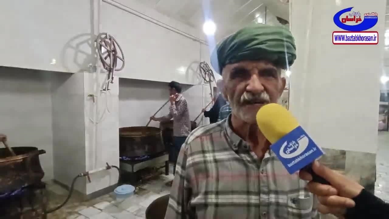 پذیرایی از مهمانان امام حسین با غذای سنتی به نام بزباش در روستای نصرآباد از توابع شهرستان خوسف