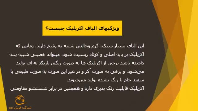 اکریلیک نوعی الیاف مصنوعی هستند که از پلیمری به نام "پلی اکریلو نیتریل" با میانگین مولکولی در حدود ۱۹۰۰ مونومر واحد ساخته شده است.در ایالات متحده به پلیمری که حداقل ۸۵% ان پلیمر اکریلو نیتریل باشد اکریلیک گفته می شود.