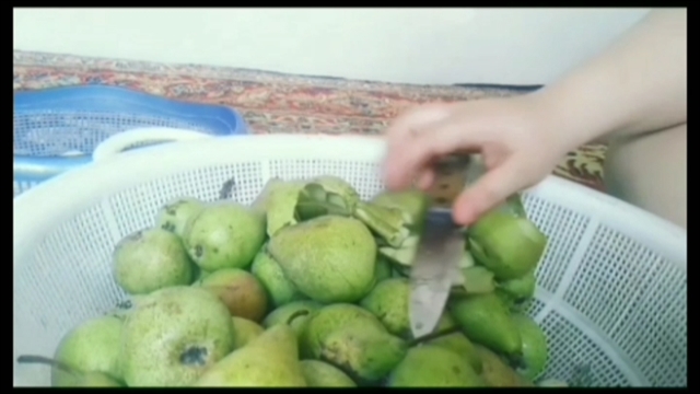 گلابی ها خوب شسته و خورد کرده 7لیوان شکر اضافه می کنید 1.5لیوان آب بهش اضافه کرده بمدت7-8ساعت در یخچال گذاشته تا آب بندازه بد رو گاز گذاشته در مدتی که روی گاز هست مواظب باشید ته نگیره هم بزنید در آخر آب نارنج تا لیمو وگلاب را اضافه کنید