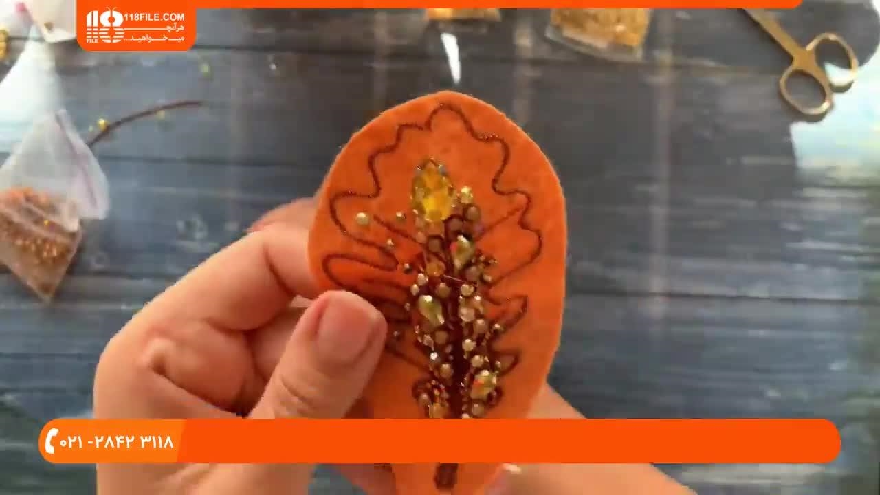 آموزش جواهردوزی - گل سینه برگ پاییزی