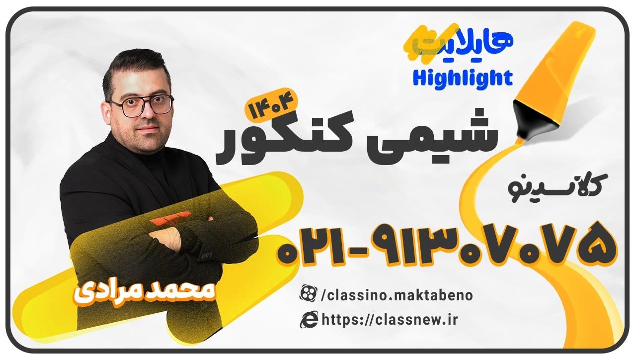 جهت شرکت رایگان در کلاس هایلایت شیمی استاد مرادی به سایت زیر مراجعه کنید. جلسه اول