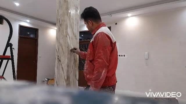اجرای طرح سنگ بر روی پایه ستون گچی