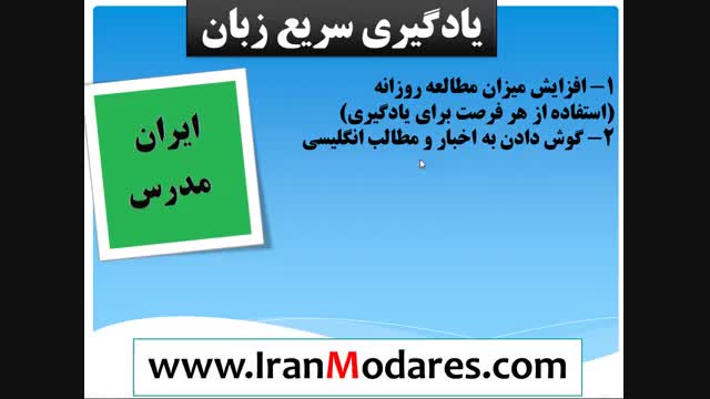 در این ویدیو پاسخ سوال چگونه زبان انگلیسی را سریعتر یاد بگیریم؟ ارائه شده است. در مقاله https://www.iranmodares.com/article-index.php?ID=3874 هم توضیحات خوبی در این زمینه می توانید ببینید.