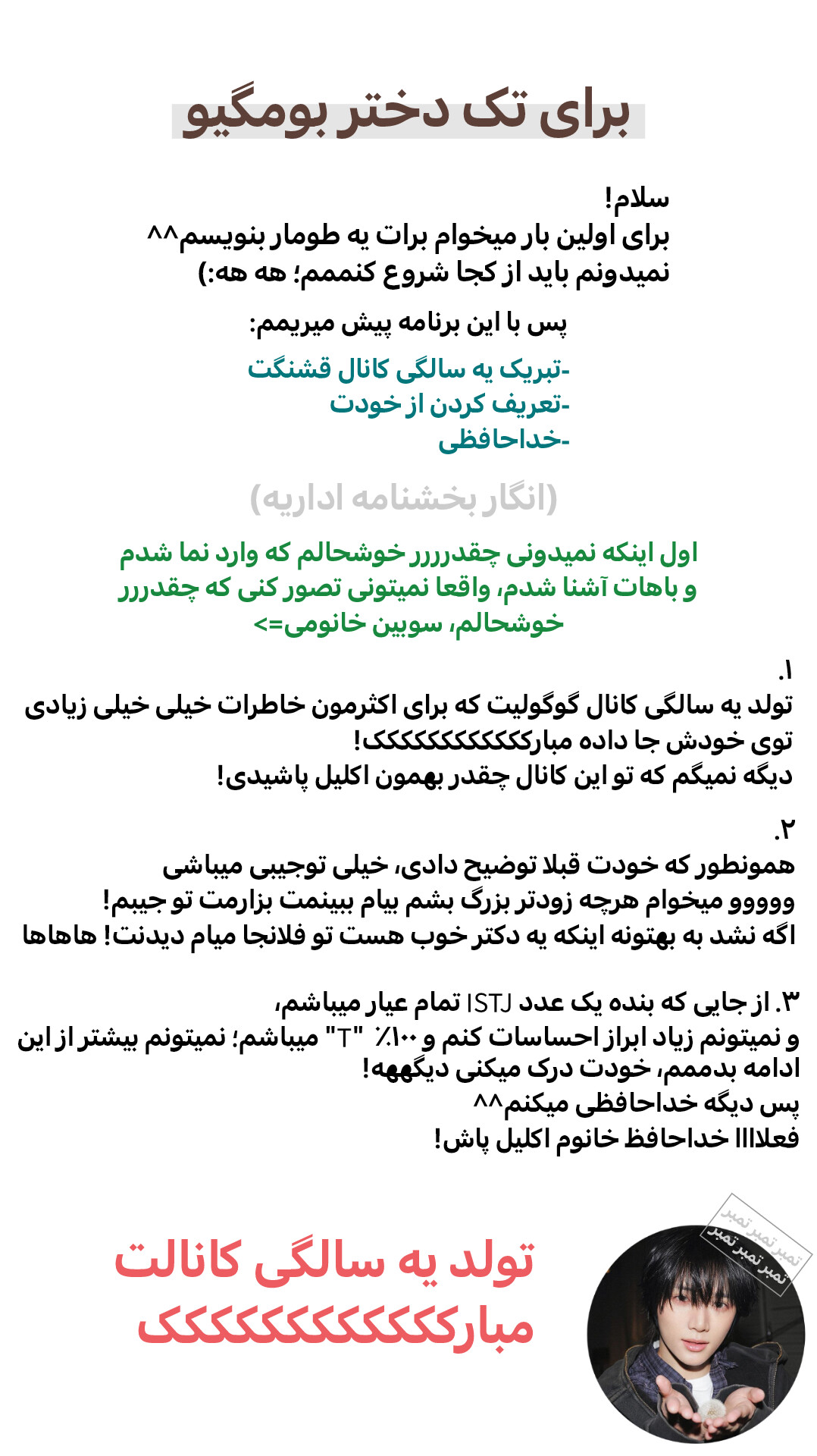 امروز تولد یه سالگی کانال یه دختر قشنگ و توجیبیه!