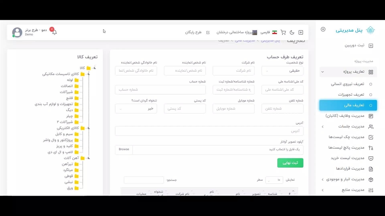 تعریف درختواره‌های کالا و خدمات پروژه در کارگاهِ‌تو