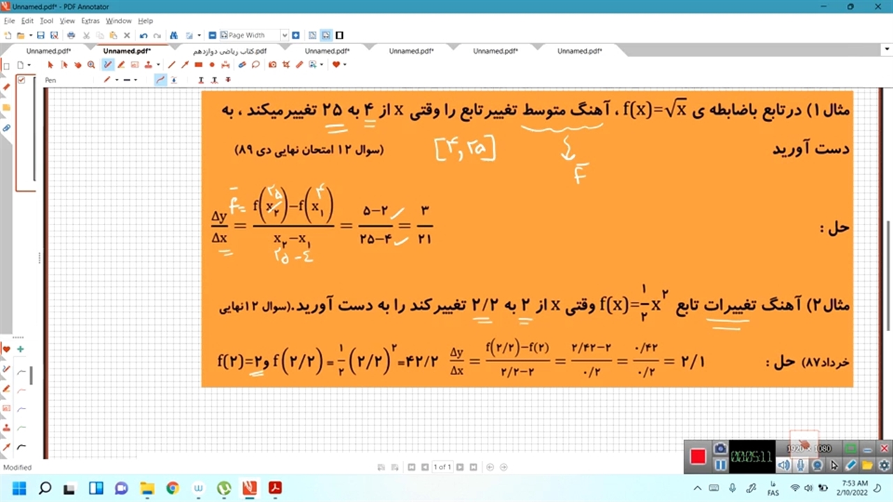 جلسه آخر فصل مشتق (اهنگ تغییر) و حل تست