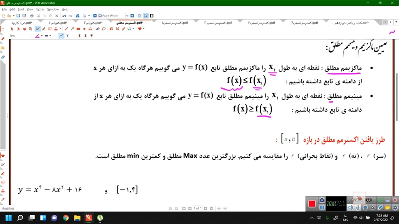 تعریف اکسترمم های تابع ،کاربرد مشتق دوازدهم تجربی