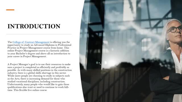The College of Contract Management is offering you the opportunity to study an Advanced Diploma in Professional Practice in Project Management course from home. This online Project Management course is a fantastic addition to your Bachelor’s degree and above all an introduction to your career in Project Management. Our Project Management course provides you with the knowledge bank and skills base you need to begin your career as a Project Manager.