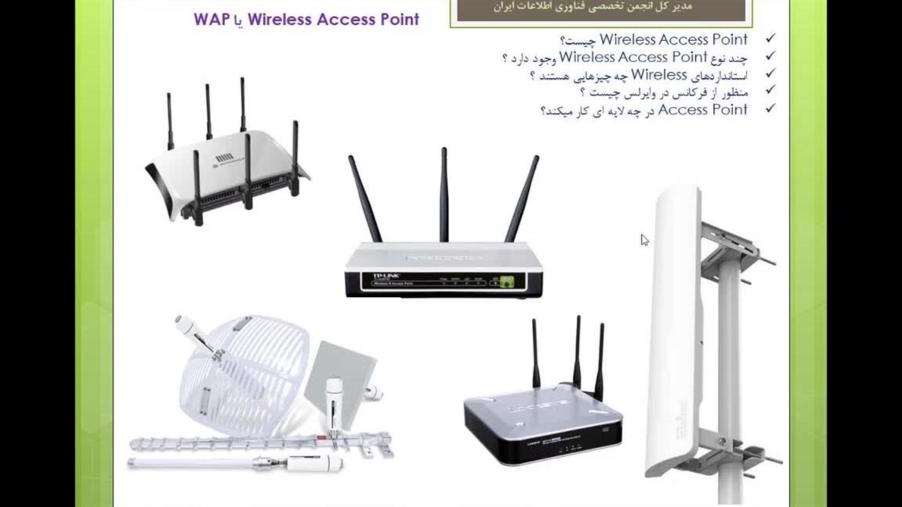 در این قسمت از دوره آموزش نتورک پلاس (Network+) به معرفی اکسس پوینت وایرلس می پردازیم. این آخرین ویدیو از سری مجموعه معرفی سخت افزارهای مورد استفاده در شبکه است و به معرفی سخت افزاری به نام Wireless Access Point می پردازیم در این ویدیو ما مفهوم وایرلس را بررسی می کنیم ، اینکه Access Point چیست و چه کاربردهایی دارد و انواع و اقسام مختلف آنرا بررسی می کنیم ، بصورت سطحی در خصوص فرکانس های مختلف وایرلس صحبت می کنیم و سپس به سراغ استانداردهای مورد استفاده در وایرلس می پردازیم و ویدیو را به پایان می رسانیم .