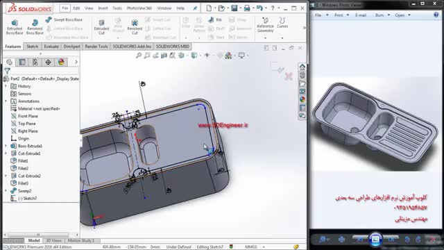 فیلم آموزش پروژه طراحی سینک ظرفشویی - Sink در نرم افزار سالیدورک (SolidWorks). برای تهیه این فیلم آموزشی به لینک زیر مراجعه فرمایید: