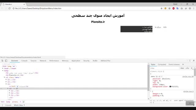 آموزش گام به گام و کامل ایجاد منوی Dropdown توسط HTML و CSS بدون استفاده از جی کوئری از صفر تا صد برای مشاهده ویدئوهای بیشتر به وب سایت ما مراجعه کنید: www.plansite.ir