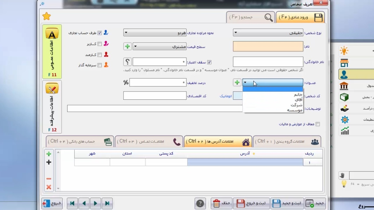 آموزش تعریف اشخاص در نرم افزار فروشگاهی آراد