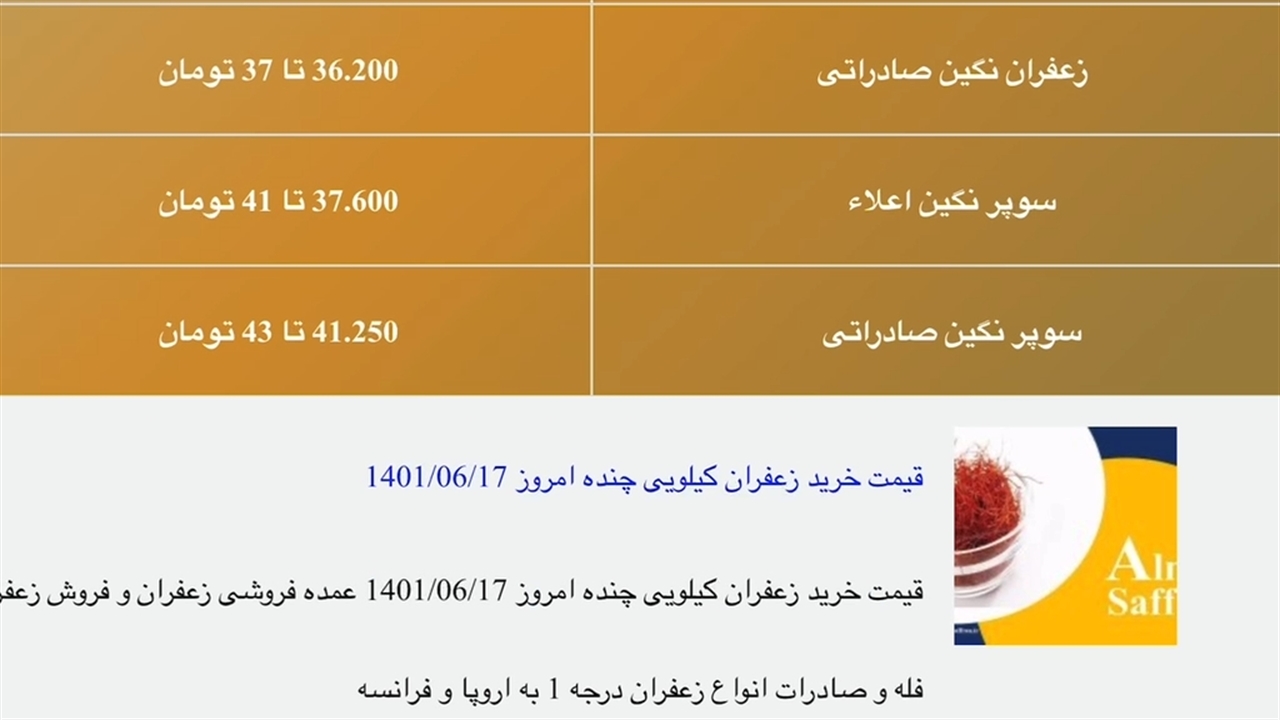 برای دریافت جدول قیمت خرید زعفران با ما در ارتباط شوید.