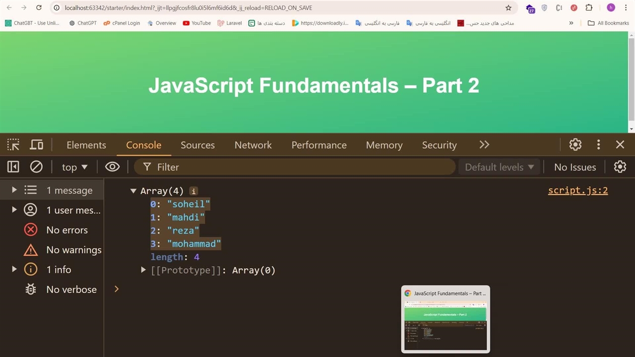 پخش صدا آموزش جاوااسکریپت(اصول اولیه) ۲۲ ویدیو hossein sadeghie -۲۲ / ۵ بارگذاری ویدیوهای بیشتر ۰۸:۵۳ آرایه ها hossein sadeghie بارگذاری ویدیوهای بیشتر آرایه ها اشتراکگذاری لیست پخش ۰ نظر ۰ نظر دانلود دانلود ویدیو دانلود کیفیت 1080p ۲۵.۰۱ مگابایت دانلود کیفیت 720p ۱۶.۲۹ مگابایت دانلود کیفیت 480p ۱۱.۷۱ مگابایت دانلود کیفیت 360p ۹.۰۳ مگابایت دانلود کیفیت 240p ۶.۴۷ مگابایت دانلود کیفیت 144p ۴.۹۰ مگابایت گزارش تخلف بیشتر گزینههای بیشتر لیست پخش لایکها گزارش تخلف ۰ لایک hossein sadeghie منتشر شده در تاریخ ۱۴۰۳/۰۶/۱۳ این کانال دنبال شد دنبال کردهاید دنبال کردن این کانال دنبال کردن ادامه نظرات لبخند لبخند لغو ثبت نظری برای نمایش وجود ندارد.