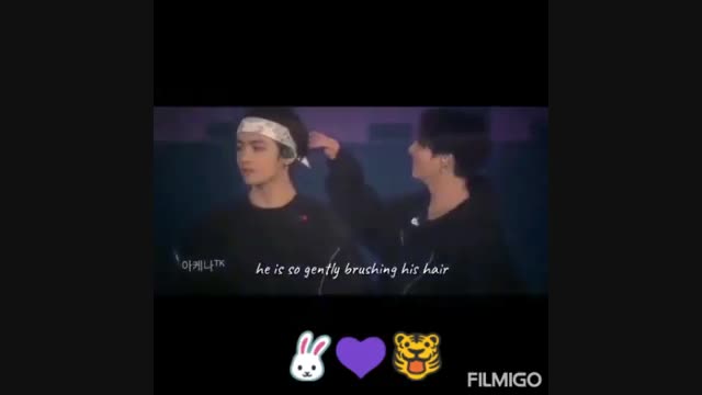 همینطور که به ماساژ دادن گردن تهیونگ علاقه داره اینجا نشون میده که جونگ کوک علاقه خاصی به موهای تهیونگ داره که باعث میشه دوباره به ریل بودنش ایمان بیاوریم و همگی سافت شویم ♡.♡