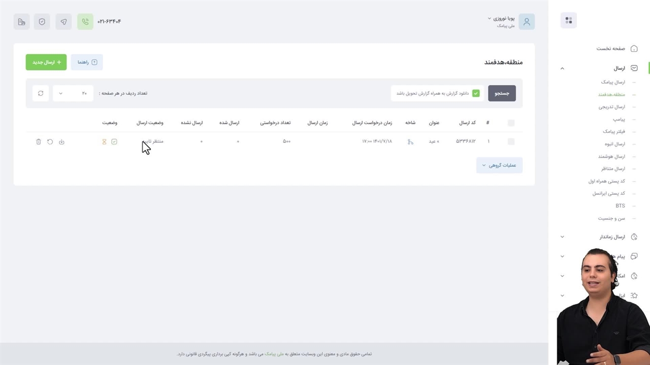 15:55 رکورد و جزئیات ارسال پیامک منطقه هدفمند