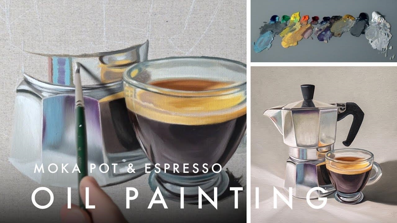 در این ویدئو، من روند کار بر روی یک نقاشی رنگ روغن را نشان میدهم که شامل یک قابلمه موکا در کنار یک شات اسپرسو است.