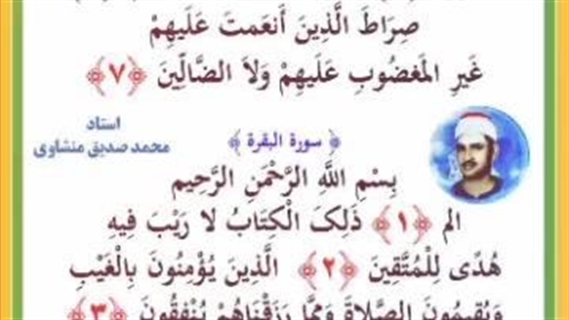 تلاوت سوره حمد و آیات ابتدایی سوره بقره توسط استاد محمد صدیق منشاوی رضوان الله علیه