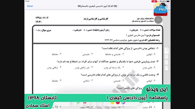 ویدیو حل تشریحی سوالات امتحان آیین دادرسی کیفری یک پیام نور برای دانشجویان پیام نور