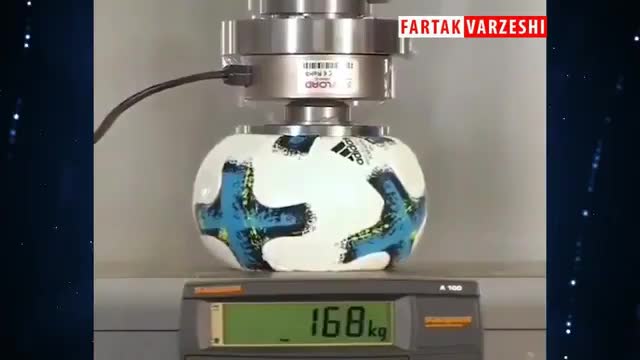 تست مقاومت توپ فوتبال زیر فشار دستگاه پرس هیدرولیک