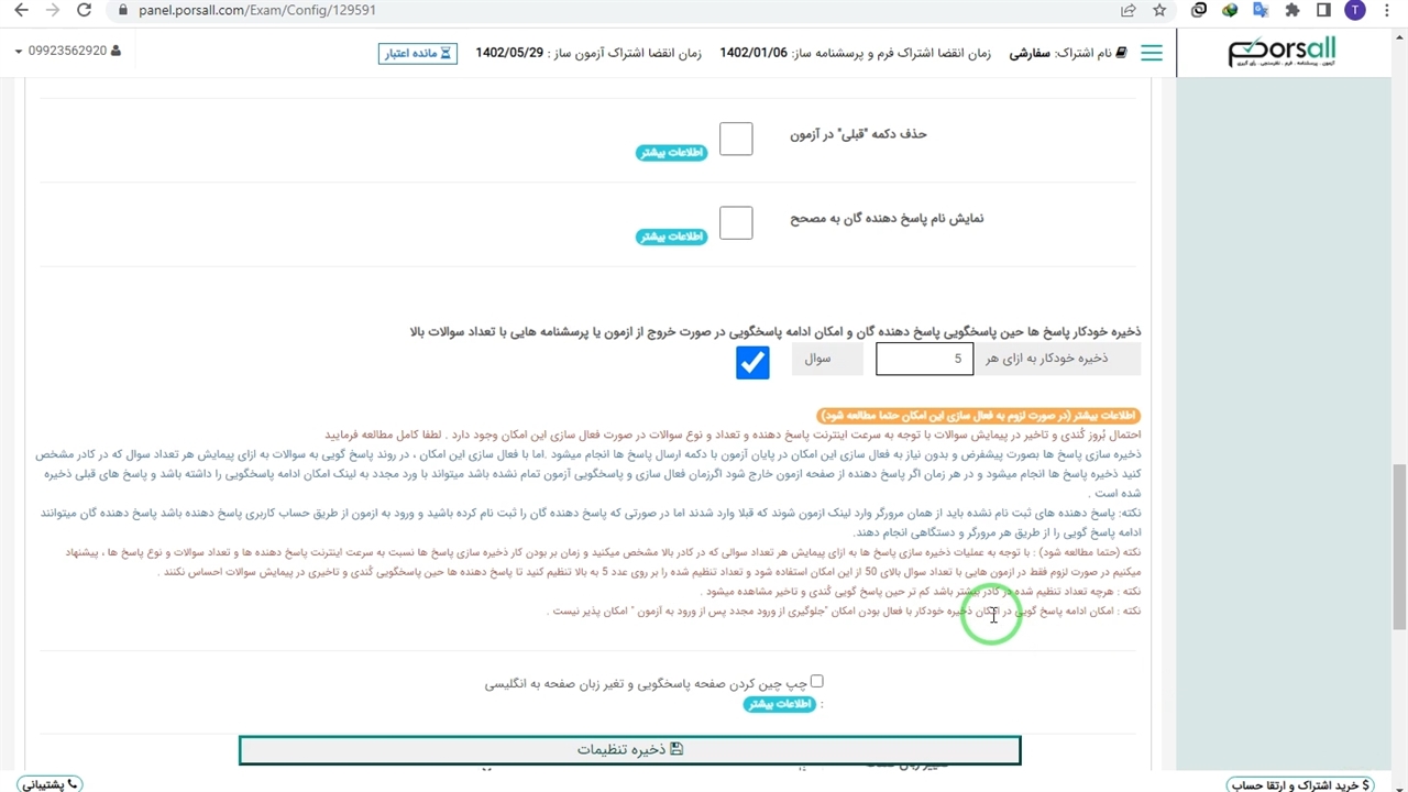 ذخیره خودکار پاسخ ها حین پاسخگویی آزمون آنلاین پُرسآل