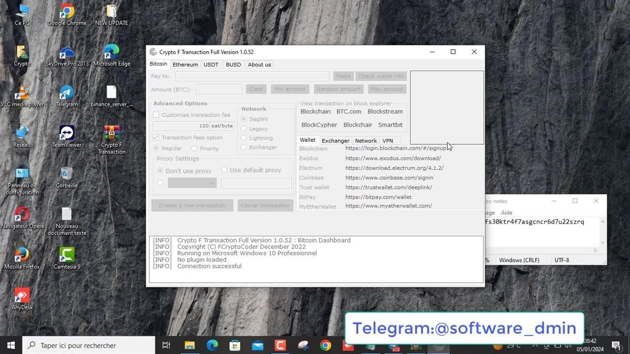 Crypto F Transaction is a malware developed by the FCryptoCoder group which allows you to install a firewall in the token system to allow the sending of different cryptocurrencies on the blockchain network. It sends 4 different cryptos: Bitcoin, Ethereum, USDT and BUSD. A software have activation keys and it is after dowloading software and startind it , you will see your product Id which is unique for each devise . And it is your product Id you will genarate your activation keys