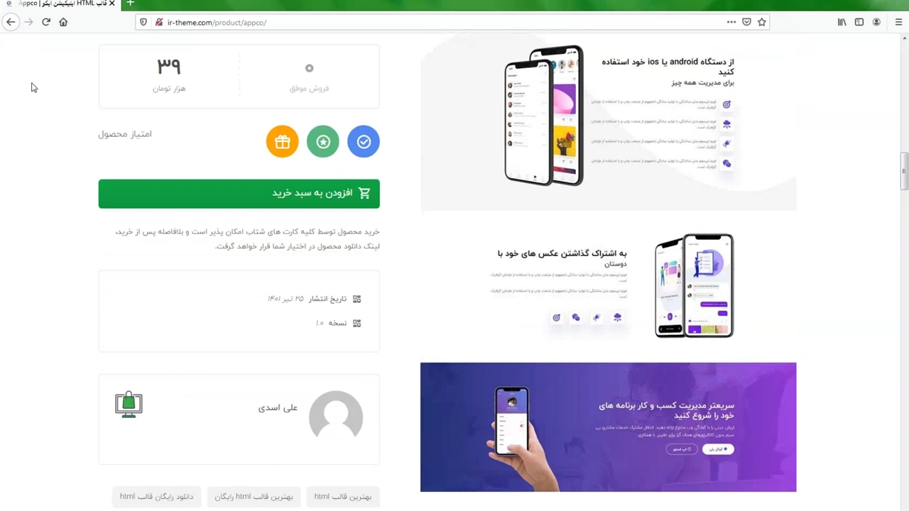 قالب HTML اپکو یک قالب زیبا و مدرن می باشد که با بوت استرپ 4 کدنویسی و طراحی شده است. معرفی اپلیکیشن ، اسلایدر پیشرفته ، گرادیانت های رنگی ، طراحی واکنشگرا و ... باعث گردیده است تا این قالب یکی از کم نظیرترین قالب ها در نوع خود باشد. قالب اپلیکیشن Appco یک قالب منحصر به فرد و خلاقانه بر پایه فناوری CSS3 ، HTML5 و JQuery می باشد. در این قالب تمامی فایل ها بصورت منظم کنار یکدیگر چیده شده اند و همه کدهای این قالب کاملا تمیز ، استاندارد و کامنت گذاری شده هستند. همچنین ویرایش و شخصی سازی این قالب بسیار آسان و ساده می باشد .