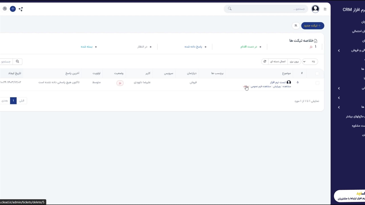 آموزش بخش تیکتینگ یا پشتیبانی در نرم افزار CRM کلید