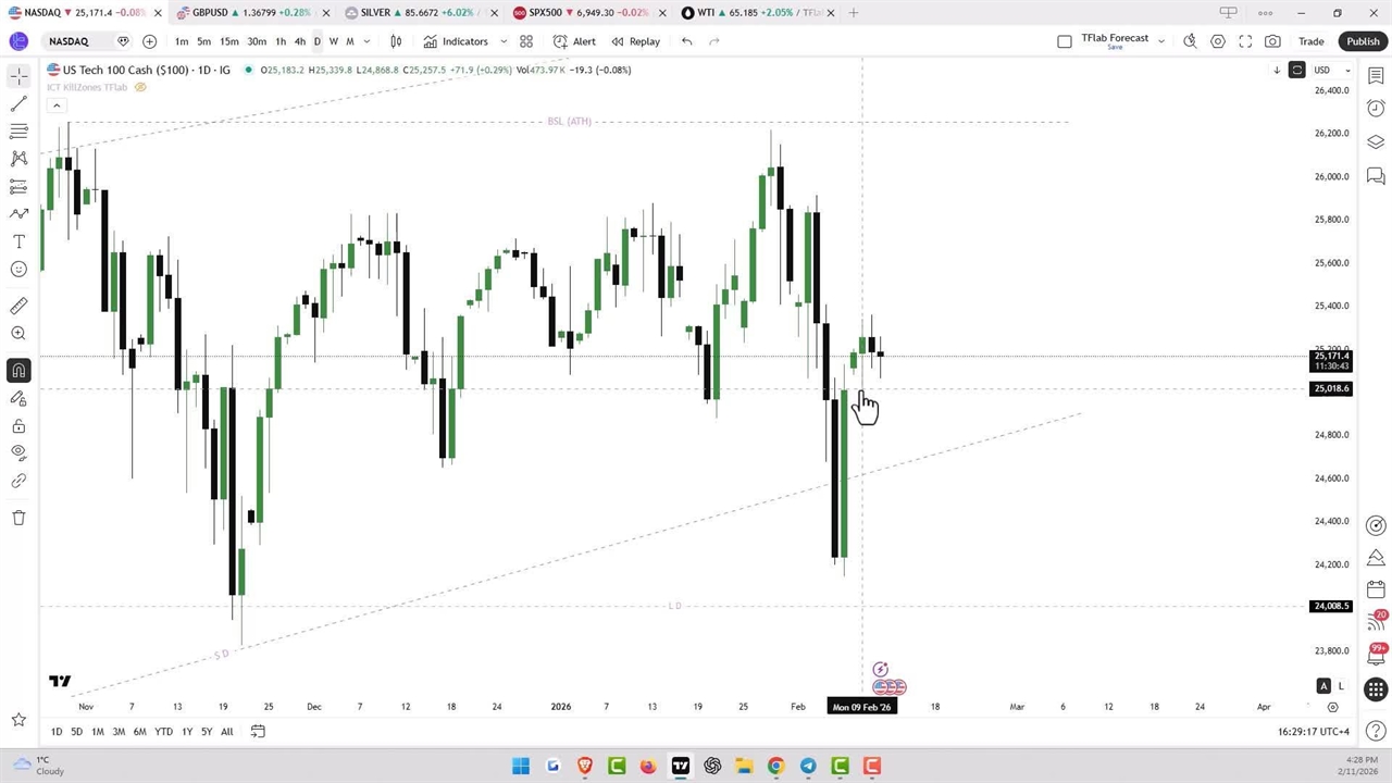سطوح کلیدی 24,560 و 24,925 (FVG) راهنمای معاملات کوتاهمدت هستند. شکلگیری سقفها و کفهای بالاتر نشانه احتمال روند صعودی میانمدت است، اما با احتیاط نسبت به اصلاحهای احتمالی معامله کنید.