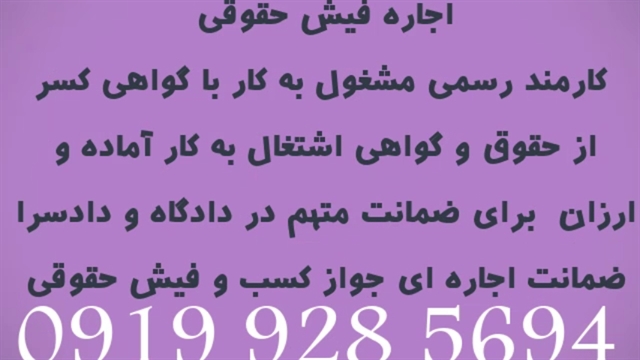 اجاره فیش حقوقی؛اجاره جوازکسب؛فیش حقوقی برای ضمانت۰۹۱۹۹۲۸۵۶۹۴