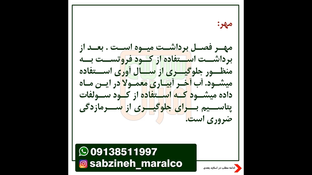 اقدامات باغداری به تفکیک ماه_مشاوره واتساپ09138511997_سبزینه مارال یزد