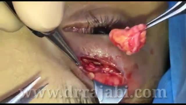 تومور لیپودرمویید بسیار نادر که نزدیک به ٣٦٠ درجه از دور کره چشم را درگیر کرده بود توده ای که در قسمت سوپرانازال بود بدلیل افتادگی پلک بیمار و نیاز به اصلاح همزمان، از طریق برش شکاف پلکی خارج شد و افتادگی پلک بیمار نیز با سچور مجدد عضله لواتور روی تارس اصلاح شد. سپس برش تانژنشیال روی ملتحمه داده شد و تومور که قسمت سوپرولترال، لترال و اینفریور کره چشم را درگیر کرده بود برداشته شد.اطلاعات بیشتردر سایت :