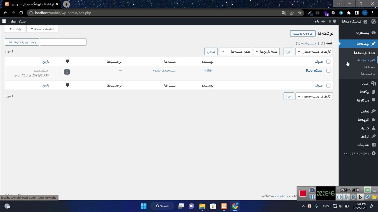پخش صدا معرفی بخش اصلی وردپرس اشتراکگذاری لیست پخش ۰ نظر ۰ نظر دانلود دانلود ویدیو دانلود کیفیت 1080p ۱۸۸.۳۶ مگابایت دانلود کیفیت 720p ۱۰۶.۷۳ مگابایت دانلود کیفیت 480p ۶۸.۸۳ مگابایت دانلود کیفیت 360p ۴۹.۰۸ مگابایت دانلود کیفیت 240p ۳۱.۷۶ مگابایت دانلود کیفیت 144p ۲۱.۳۷ مگابایت گزارش تخلف بیشتر گزینههای بیشتر لیست پخش لایکها گزارش تخلف ۱ لایک mahan karimi منتشر شده در تاریخ ۱۴۰۲/۰۱/۰۳ این کانال دنبال شد دنبال کردهاید دنبال کردن این کانال دنبال کردن معرفی بخش های اصلی وردپرس و توضیحات بخش ها و نکات ادامه آموزش نظرات لبخند لبخند لغو ثبت نظری برای نمایش وجود ندارد.