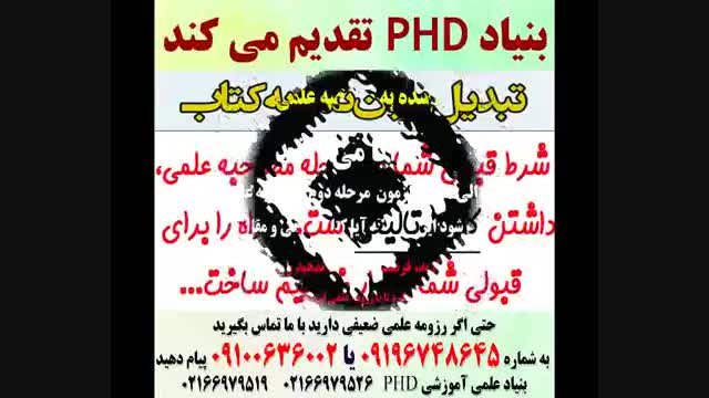 تقویت رزومه علمی با تالیف کتاب و چاپ مقاله.((تضمینی)) داوطلب آزمون دکتری قبولی در آزمون دکتری و راهیابی به مقطع دکتری نیازمند داشتن رزومه علمی قوی و مورد توجه می باشد. بنیاد علمی phdسرا با همکاری بنیاد علمی علوم انسانی افتخار دارد که با چاپ دستنوشته های علمی شما به کتاب و همچنین چاپ مقالات در مجلات علمی معتبر و چاپ در همایش ها رزومه علمی شما را قوی کند. در کمتر از یک ماه مولف چندکتاب و مقاله شوید. به همراه گواهی نامه معتبر. فقط تماس بگیرید 02166979519 و شماره خارج از وقت اداری 09196748645