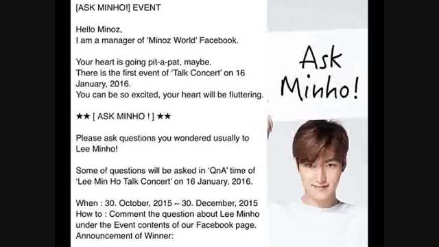 ♥اوپا لی مین هو♥2015.10.30خیلی داغ داغ خبرمهم آپدیت FB Minozworld, کنسرت صحبت سوال از اوپا لی مین هو(ترجمه کامل خبر در توضیحات)