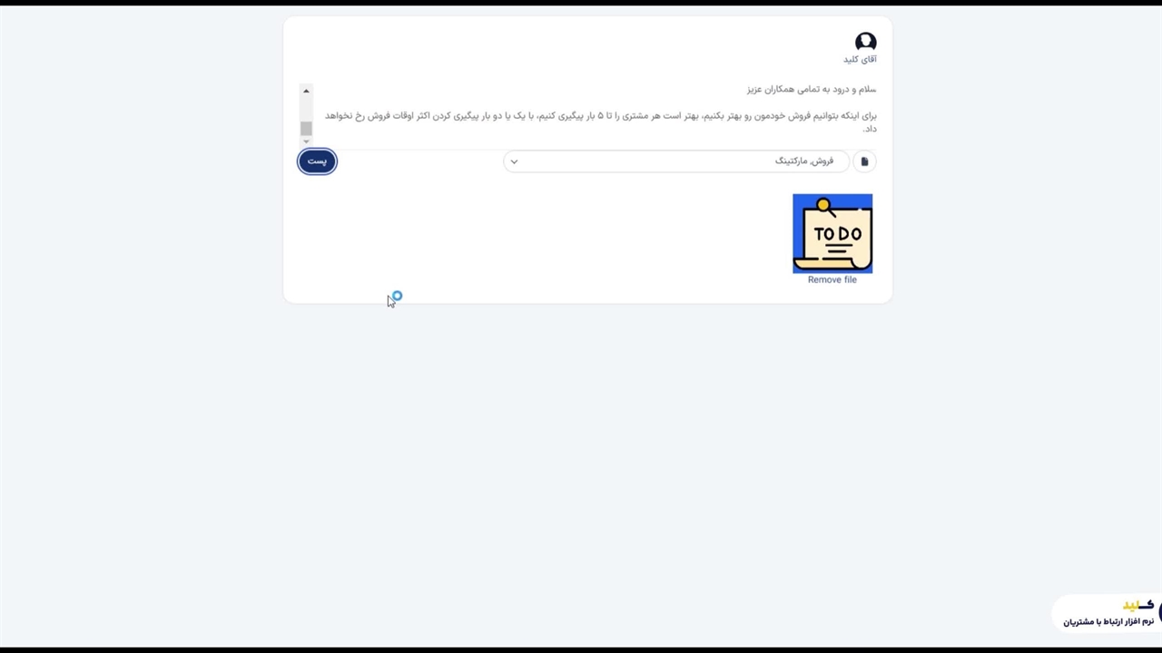 در این ویدیو شما یاد خواهید گرفت که چگونه پست ها، ایده ها، آموزش های خودتان را با واحد های سازمانی خودتان در نرم افزار CRM کلید به اشتراک بگذارید.