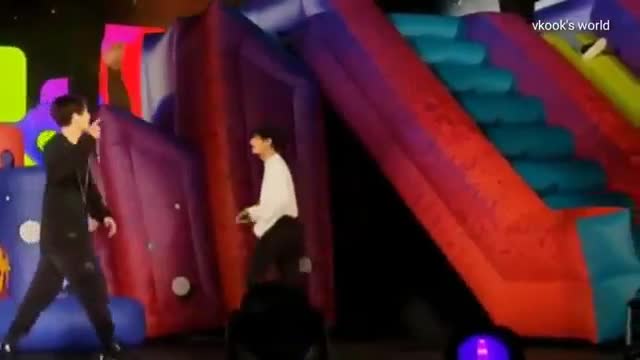 دیدید ویکوک برای هم قلب درست کردن با انگشتاشونو این بار اول نیست داخل کنسرت شیکاگو و همینطور لاس وگاس هم درست کردن اما این بار جلوی همه بدن هیچ ترسی دیدید نامجون میخواست دست جونگ کوک رو بندازه چرا نمیزارید حال کنن این دوتا عشق^~^