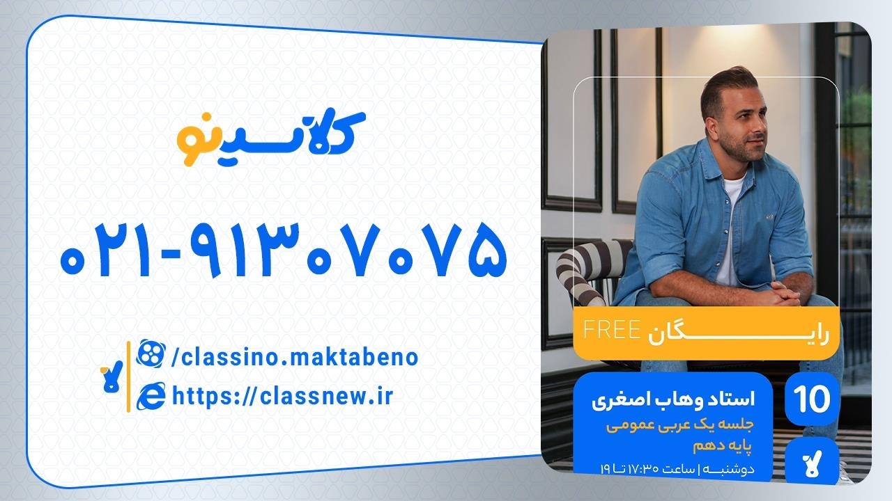 جلسه اول از کلاس آنلاین عربی دهم استاد وهاب اصغری مدرس برتر کشور و موسسه کلاسینو