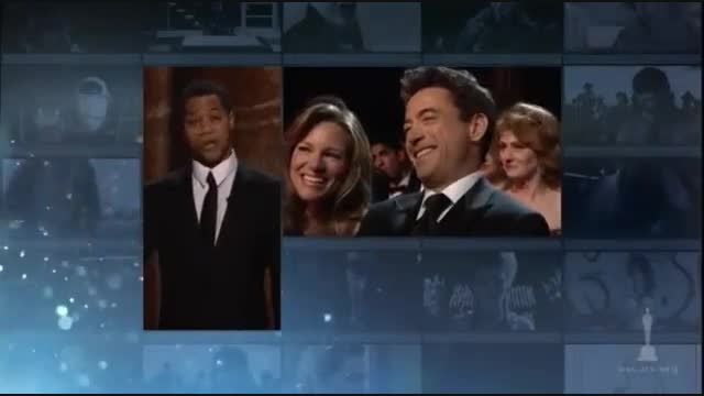 توضیحات:هیث لجر حدود 1 سال پیش و در ژانویه 2008 بر اثر اوردوز فوت میکند و این پدر-مادر و خواهرش هستند که اسکار او را دریافت میکنند!
