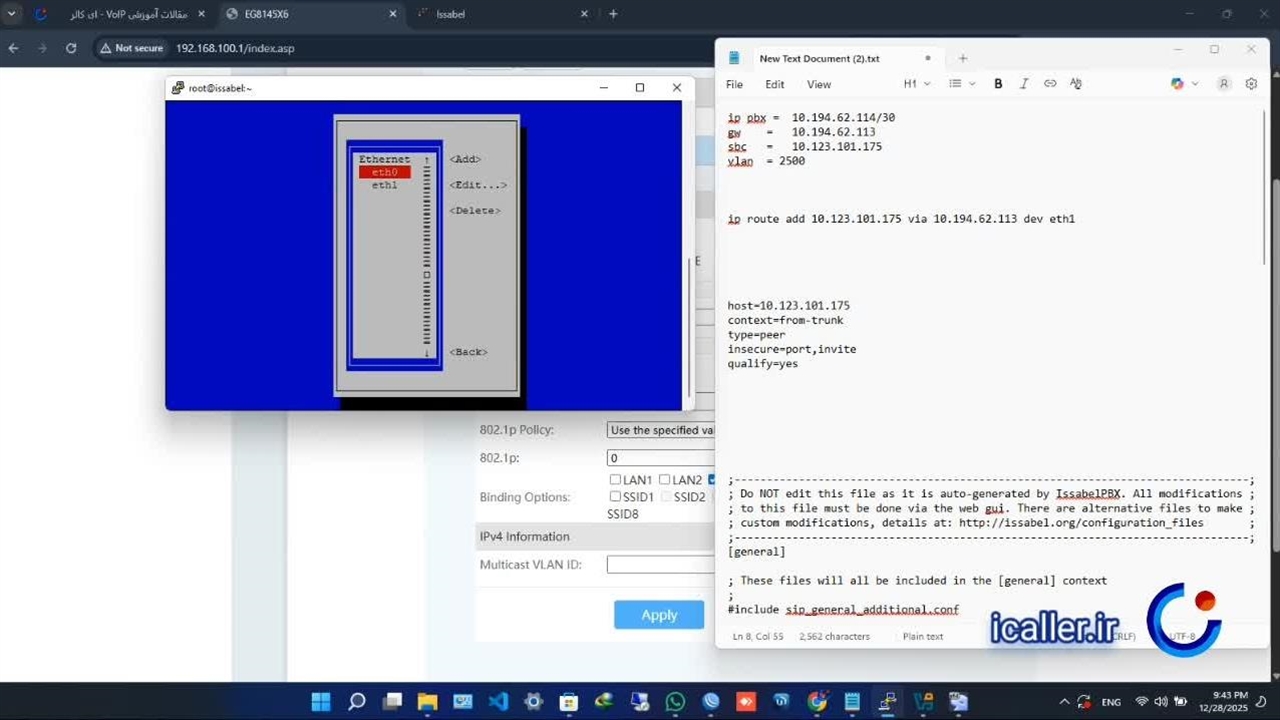 در این ویدیو، راهنمای کامل راهاندازی سیپ ترانک مخابرات FTTH روی ایزابل (Issabel) بدون استفاده از میکروتیک را بهصورت مرحلهبهمرحله آموزش دادهایم.