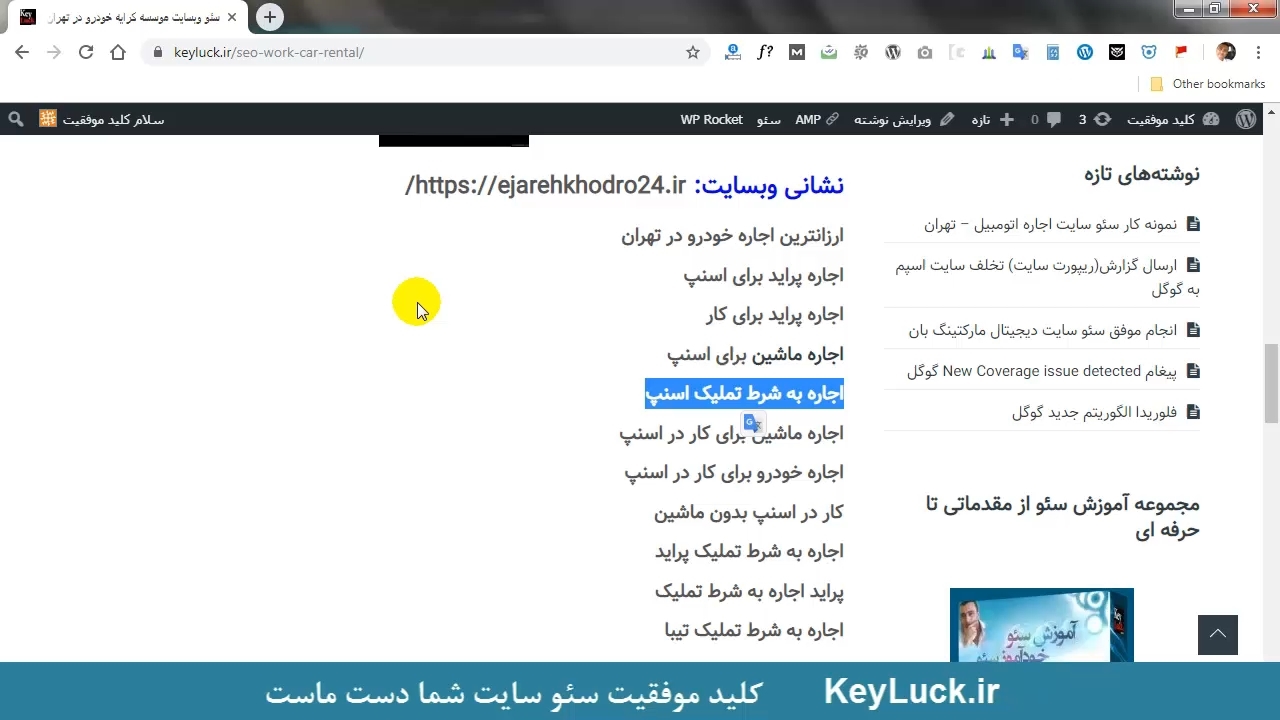 پروژه سئو وبسایت اجاره خودرو با 20 کلمه کلیدی در صفحه اول گوگل
