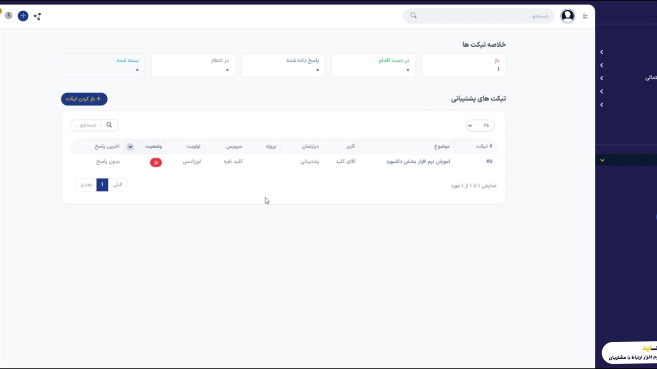 پخش صدا آموزش نحوه پشتیبانی گرفتن از نرم افزار CRM کلید اشتراکگذاری لیست پخش ۰ نظر ۰ نظر گزارش تخلف بیشتر گزینههای بیشتر لیست پخش لایکها گزارش تخلف ۰ لایک نرم افزار سی ار ام CRM کلید منتشر شده در تاریخ ۱۴۰۳/۱۲/۱۲ این کانال دنبال شد دنبال کردهاید دنبال کردن این کانال دنبال کردن در این ویدیو شما یاد خواهید گرفت که چگونه از گروه نرم افزاری CRM کلید چطور پشتیبانی دریافت کنید. ادامه آموزش نظرات در حال حاضر امکان درج نظر برای این ویدیو غیرفعال است.