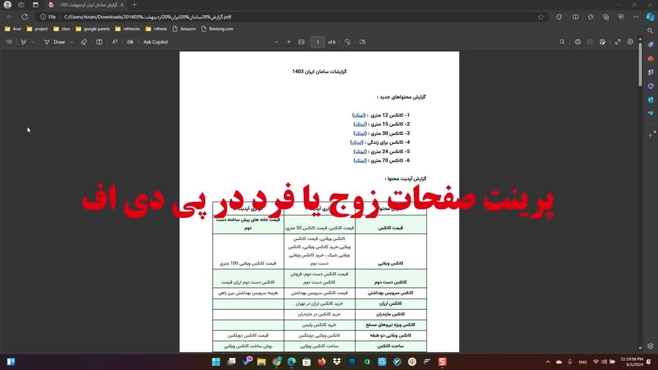 برای پرینت صفحات زوج یا فرد در pdf پس از باز کردن تنظیمات پرینت در هر نرم افزاری که قادر است فایل های pdf را بخواند، مطابق تنظیمات زیر، گزینه ها را در قسمت pages تغییر می دهیم: