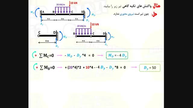 حل مثال محاسبه ی واکنش تکیه گاهی درس استاتیک رشته انجنیری سیول